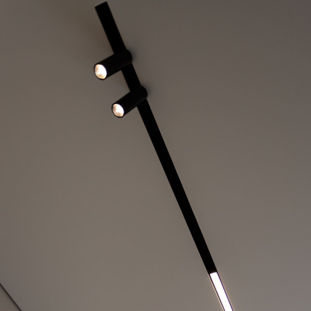 Так, люстри, споти та трек-світильники можуть існувати одночасно — просто треба правильно спланувати монтаж і підсилити місця кріплення