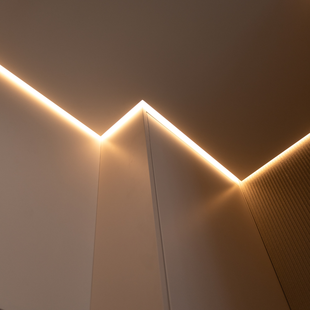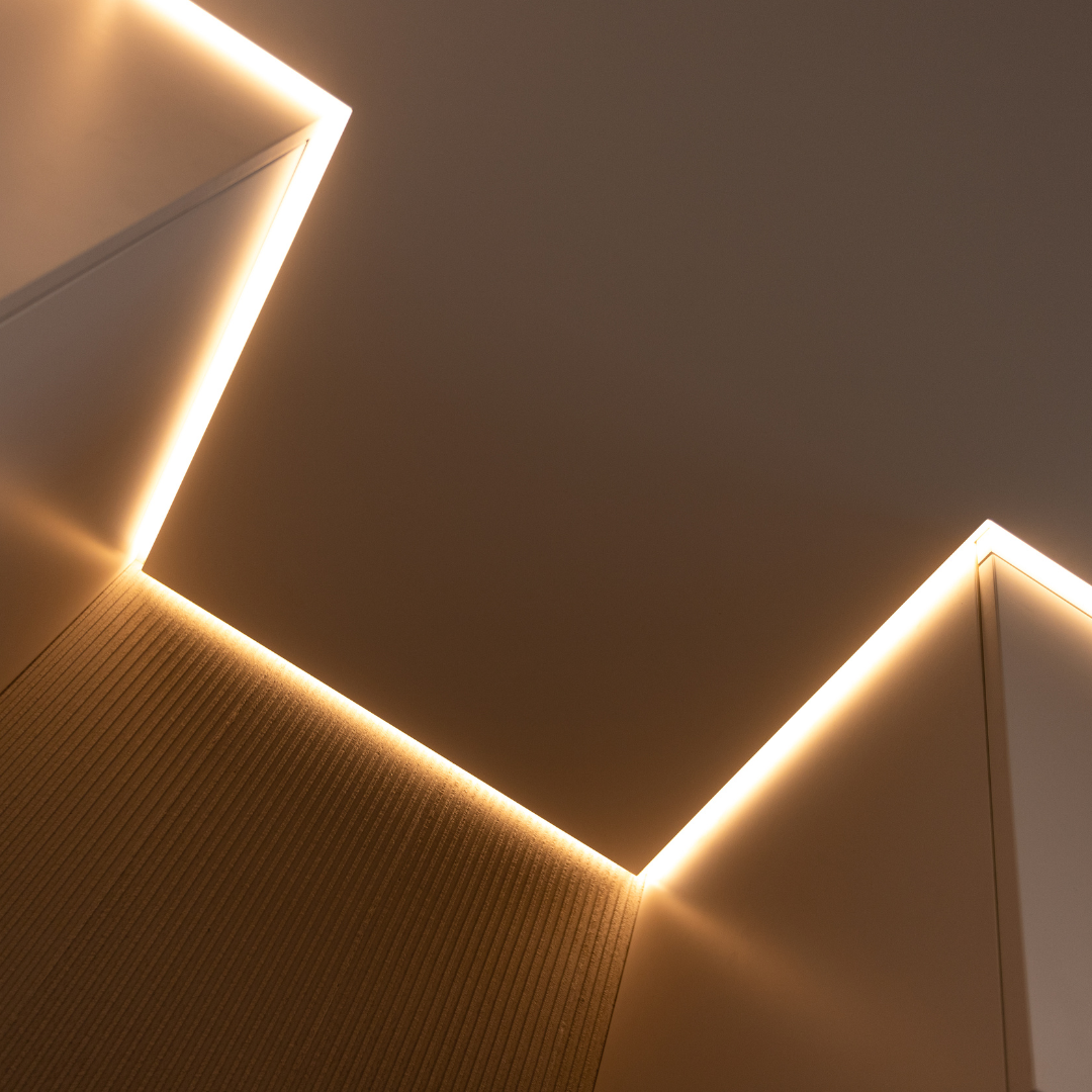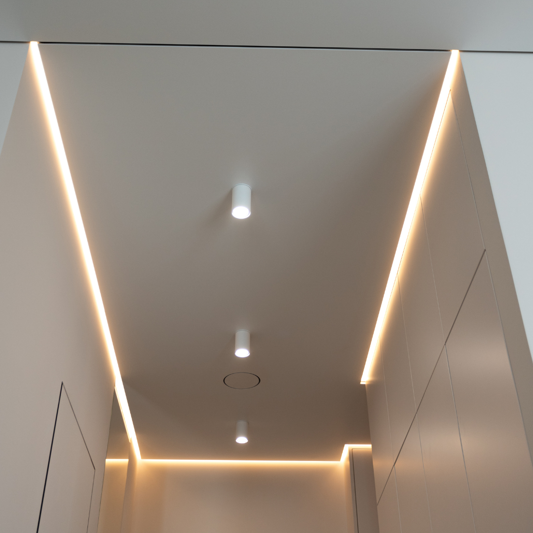 Можна поєднувати з іншими типами освітлення (споти, люстри), створювати багаторівневі конструкції
