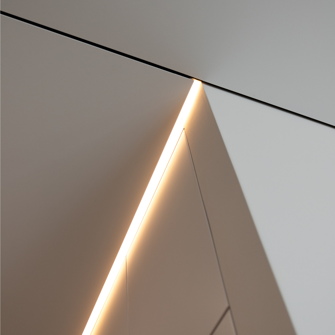 Кімната здається більшою та вищою завдяки ефекту “плаваючої” стелі