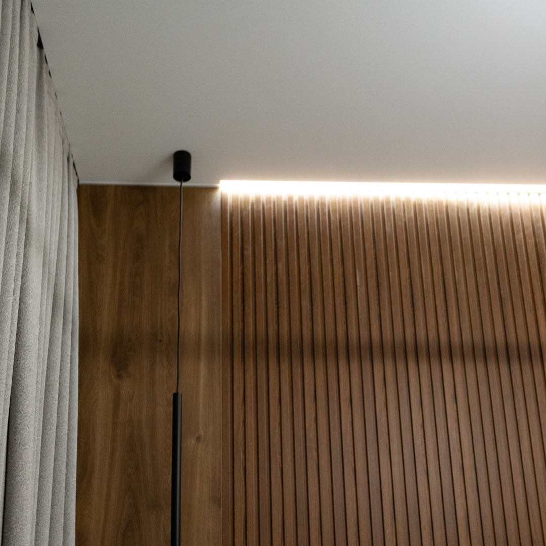 Кімната здається більшою та вищою завдяки ефекту “плаваючої” стелі