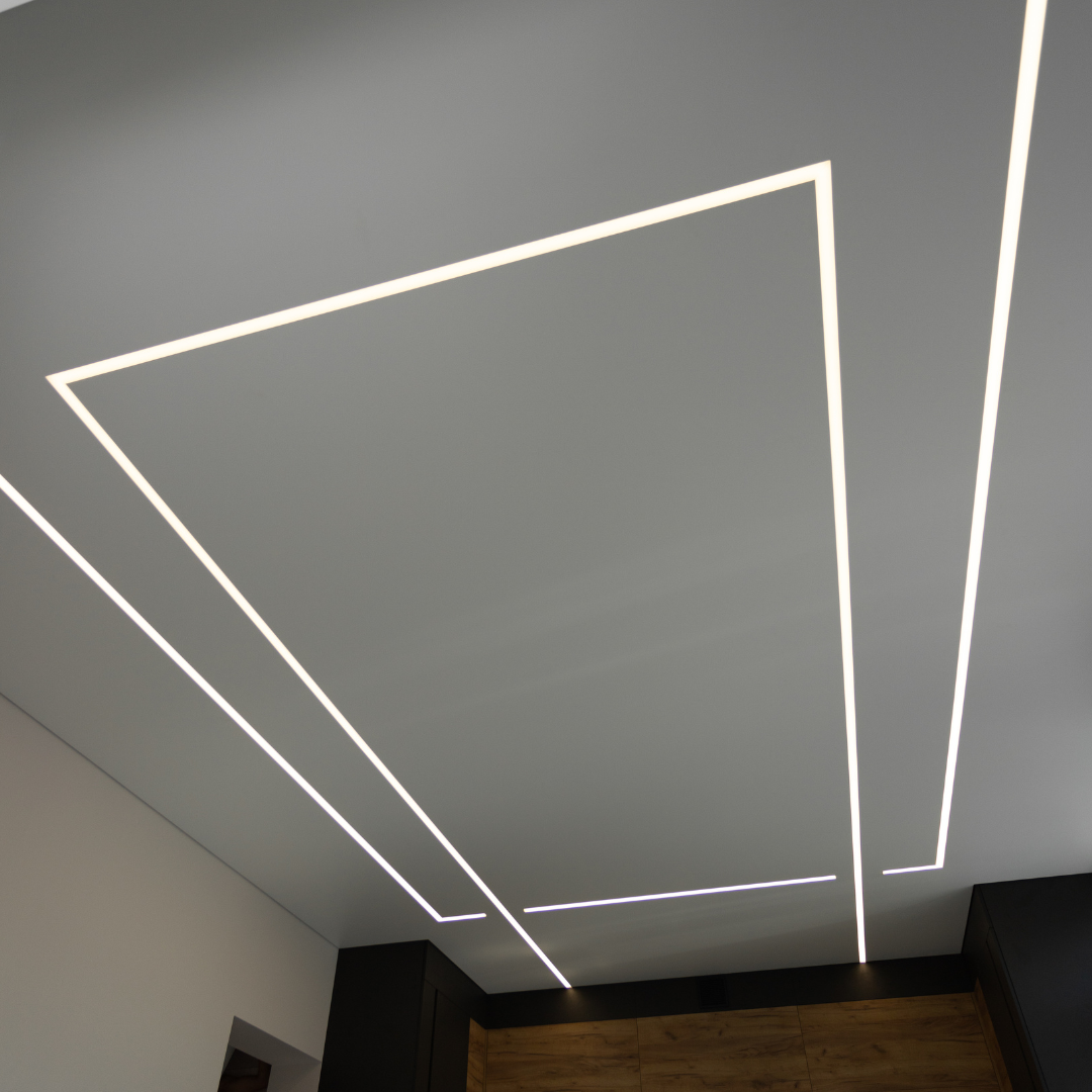 Світлові лінії можуть повністю замінити основне освітлення, якщо правильно підібрана потужність і кількість LED-світильників. У середньому — 1 м² лінії видає 800–1200 лм. Це достатньо для житлових кімнат
