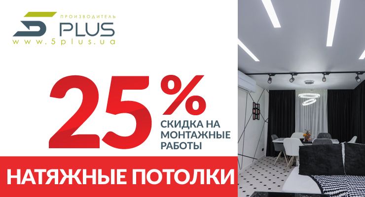 Ищите надежного производителя натяжных потолков? Компания 5plus занимается производством, продажей и установкой натяжных потолков, и уже более 7 лет создает уют в домах и офисах Днепропетровска, Киева и других регионах Украины.