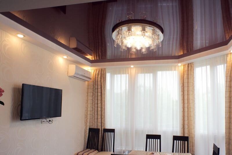 Какой коричневый натяжной потолок лучше выбрать: матовый или глянцевый?