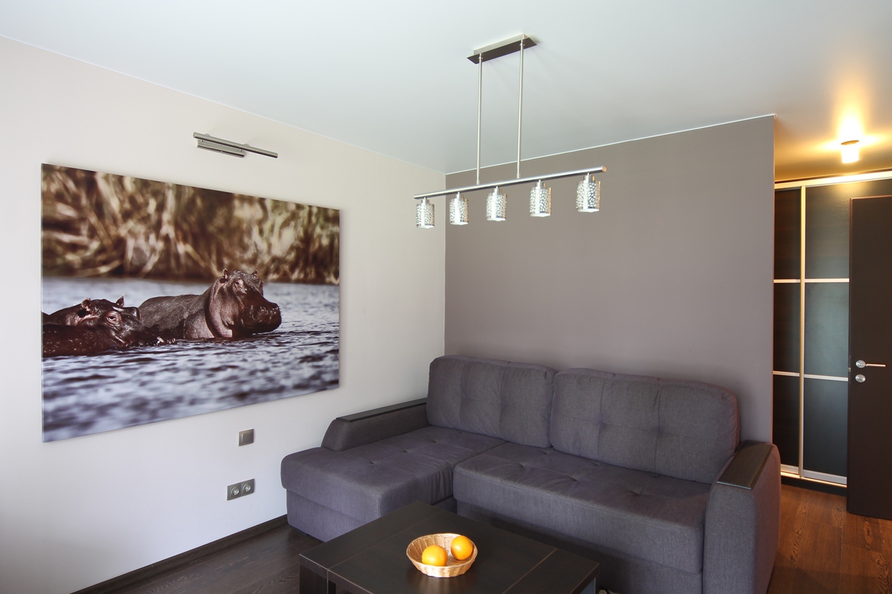 Чтобы разделить пространство на зоны, можно использовать фотопечать, покрытия разных цветов или фактур, установить двухуровневые потолки или необычную подсветку. Эффектным вариантом также будут световые линии.