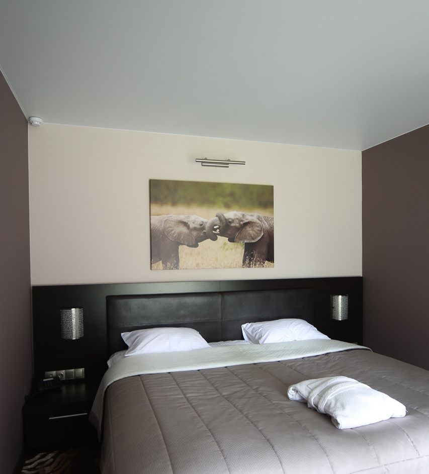 Создавая натяжной потолок с фотопечатью, следует помнить о том, что слишком большие или пестрые детали будут перегружать обстановку, поэтому рисунок надо подбирать соответствующий интерьеру.