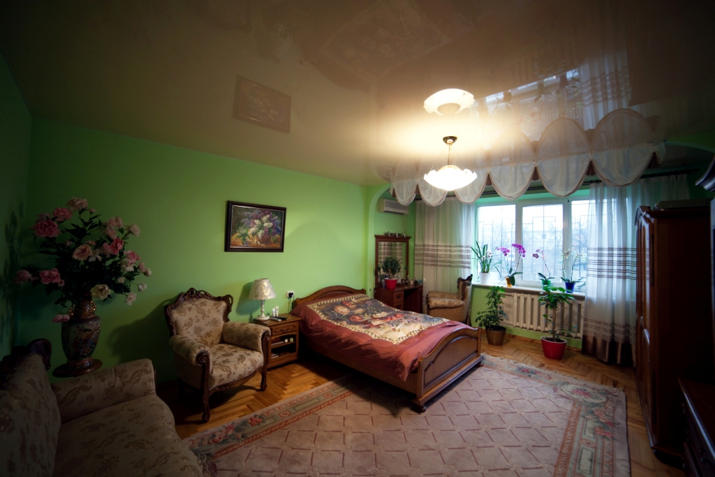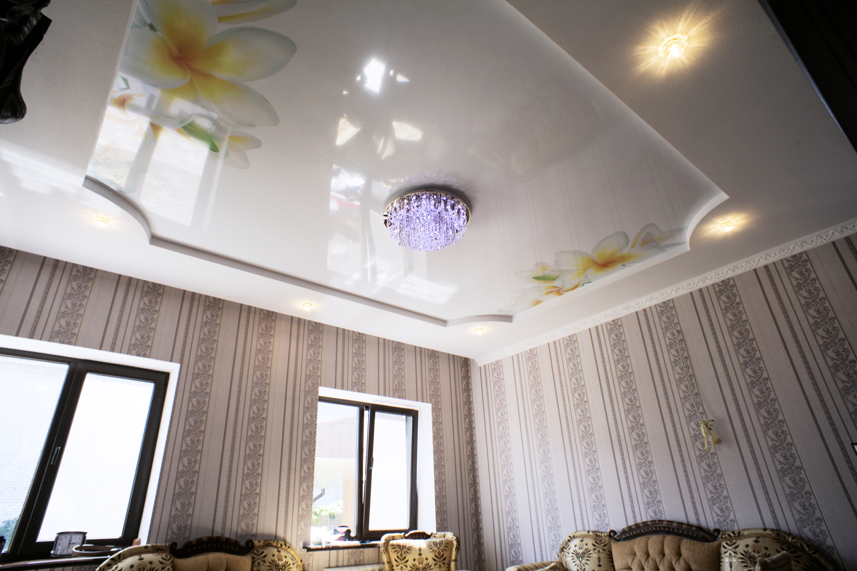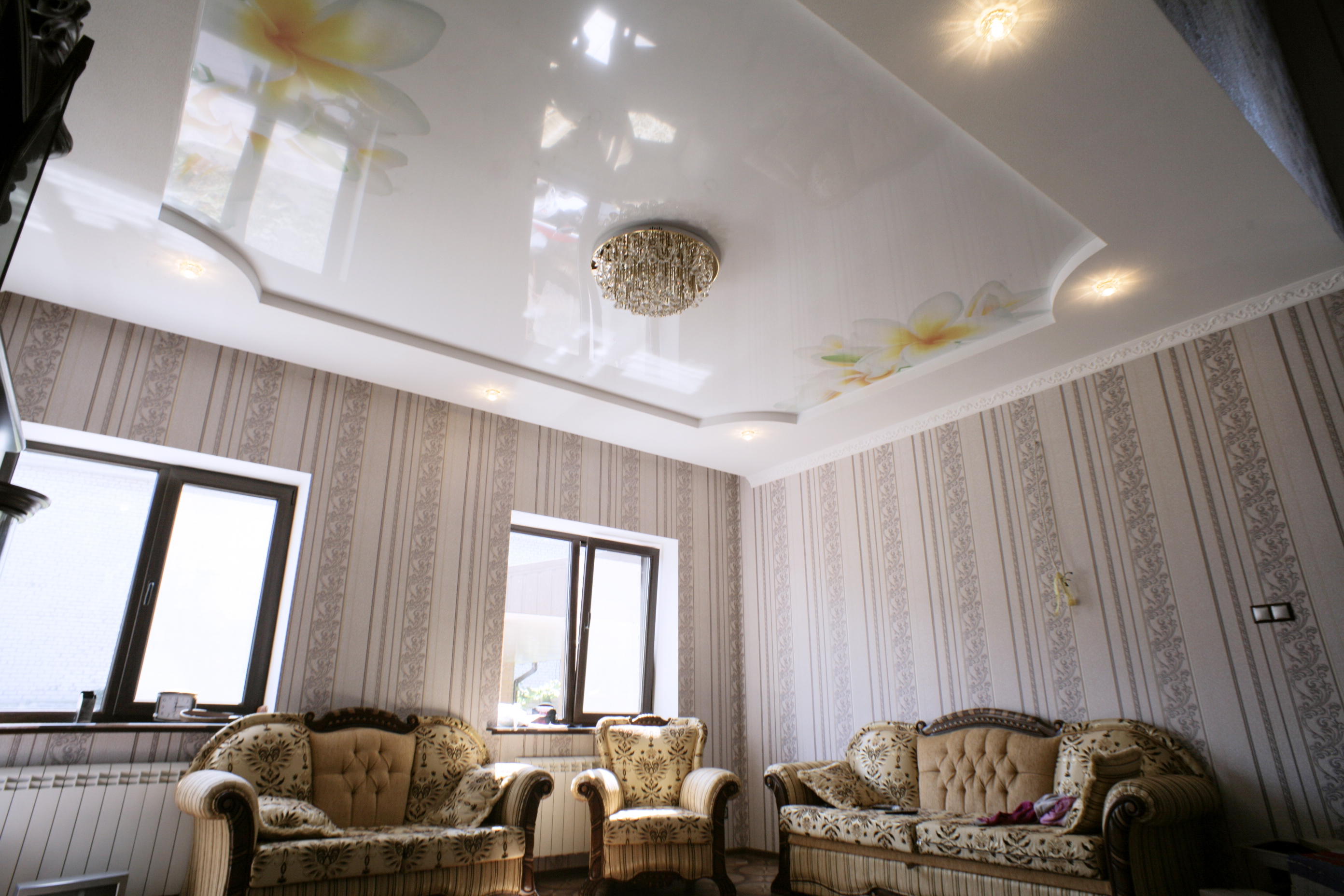 Для классических интерьеров можно использовать белые, бежевые и светло-серые полотна, а если вы хотите сделать интересный акцент или подчеркнуть индивидуальный стиль, выбирайте цвета поярче. Отличным решением для эксклюзивного оформления потолка станет полотно с фотопечатью.