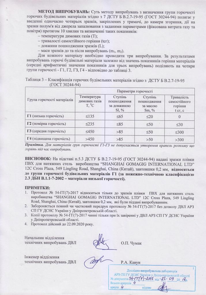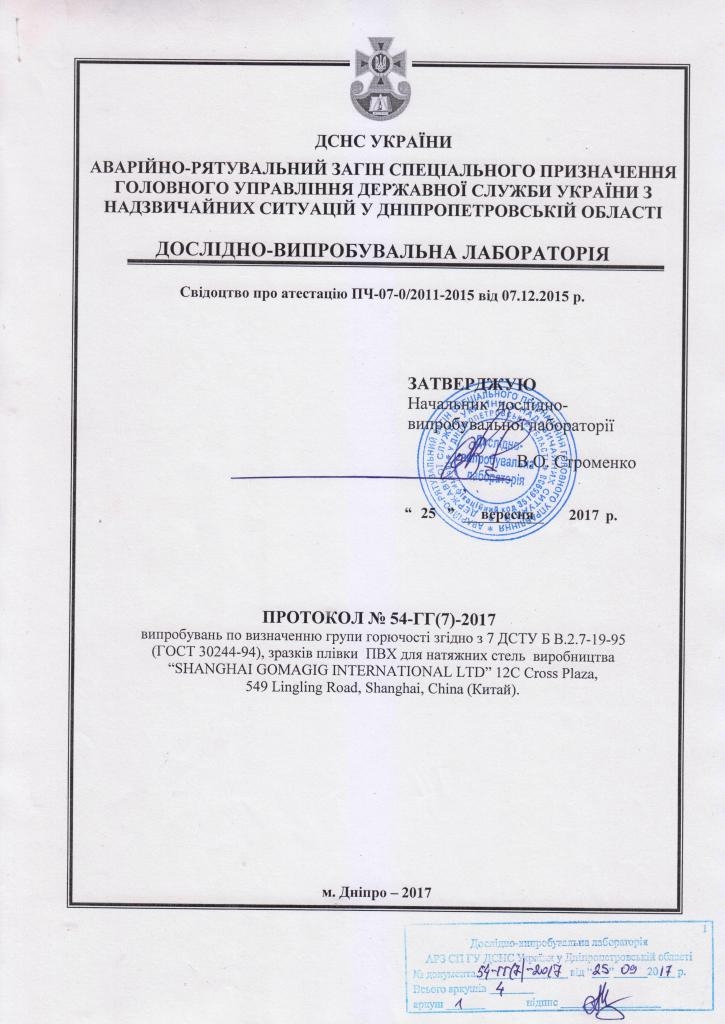 ВАШЕ СПОКОЙСТВИЕ «Висновок дослідно-випробувальної лабораторії», ГОЛОВНЕ УПРАВЛІННЯ МНС УКРАЇНИ |