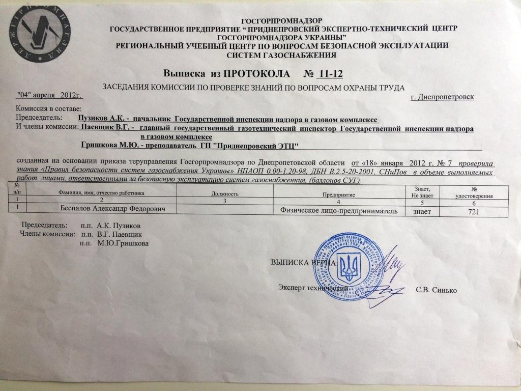 ВАША НАДЕЖНОСТЬ «Дозвіл на роботу з газом» |
