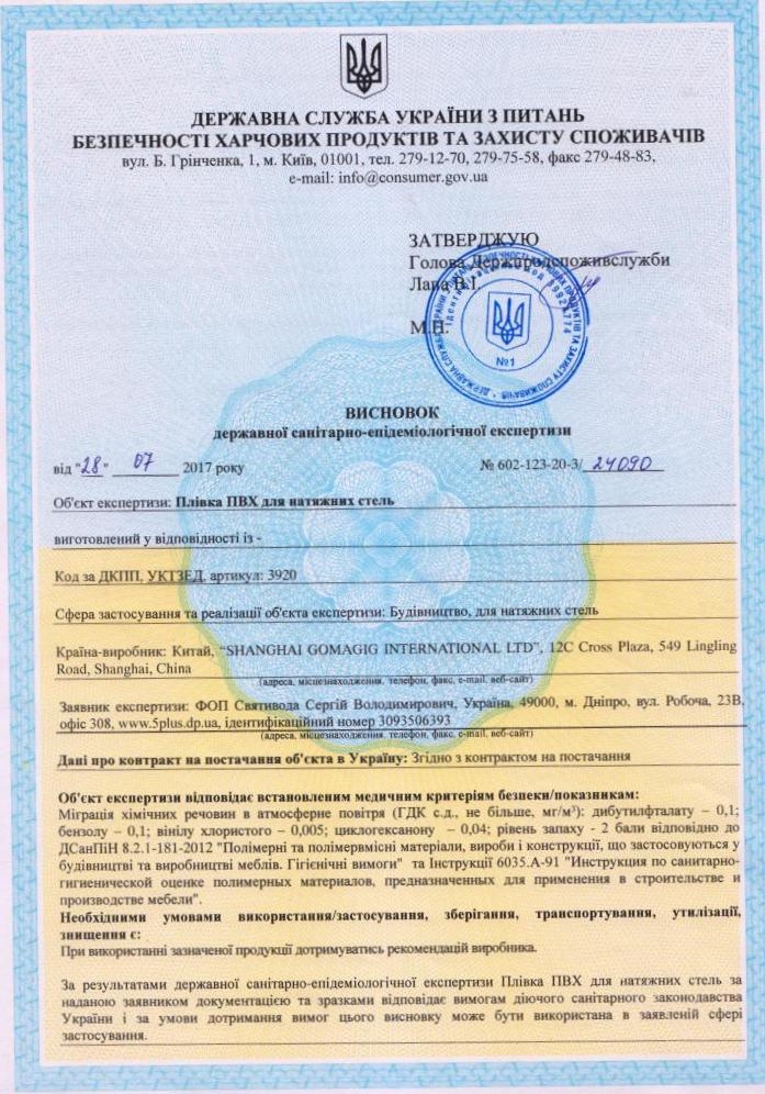 Подтверждение качества и надежности натяжных потолков 5Plus