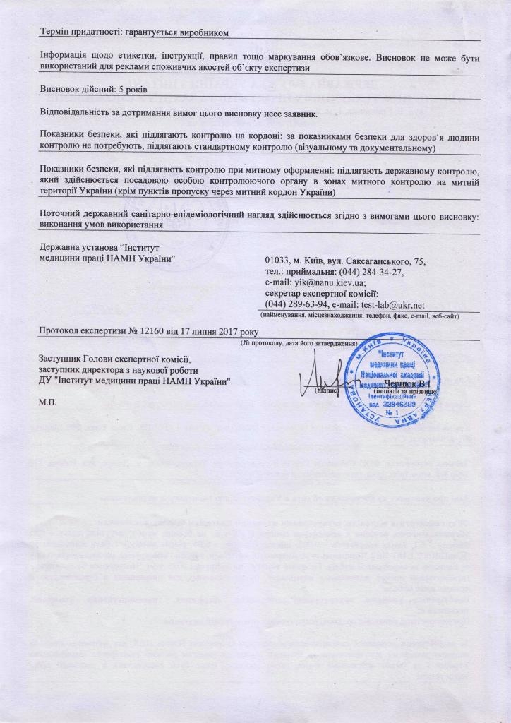 ВАШЕ ЗДОРОВЬЕ «Висновок державної санітарно-епідеміологічної експертизи», МІНІСТЕРСТВО ОХОРОНИ ЗДОРОВ’Я УКРАЇНИ |