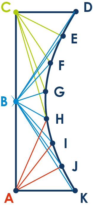 В каждой точке криволинейного участка необходимо дать минимум две диагонали