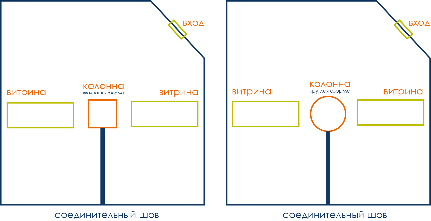 В помещениях с колоннами в отличие от обычных, на натяжных потолках приходится делать разрез. В месте разреза ставятся два невидимых багета, скрепленных между собой. Где же сделать разрез?