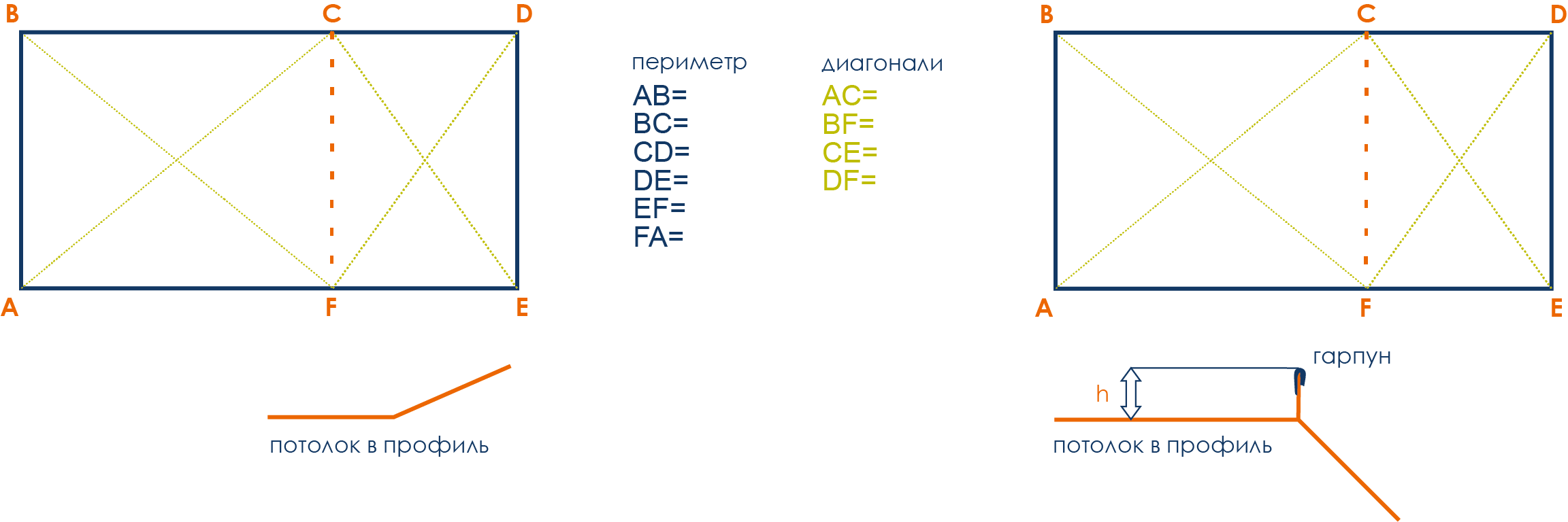Инструкция по замерам натяжных потолков по гарпунной системе крепления