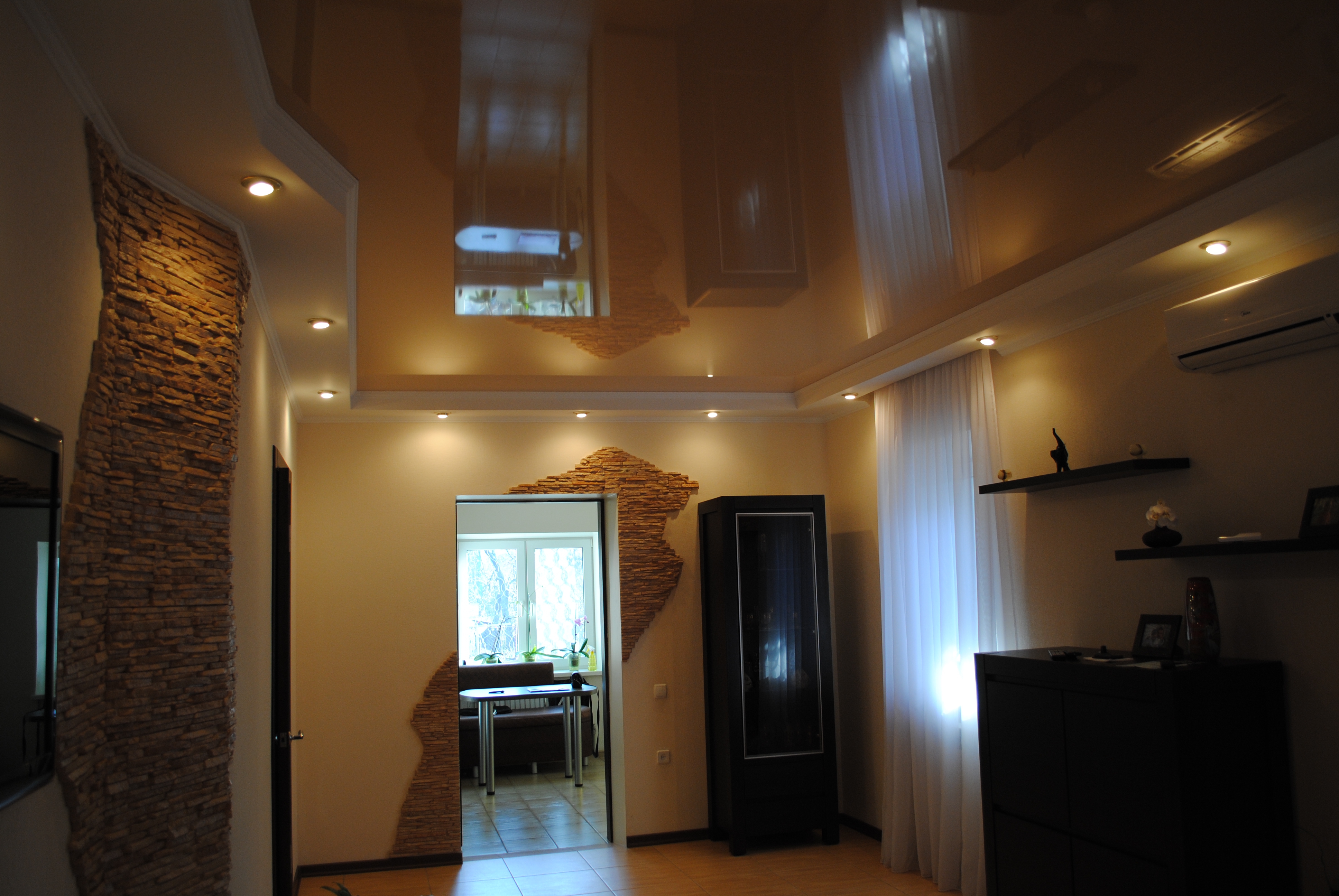 По желанию владельца квартиры, дома можно создать идеально ровную однородную поверхность потолка или придать какую-то иную форму. Натяжной потолок можно монтировать и на завершающей стадии ремонта, и в созданном ранее интерьере.