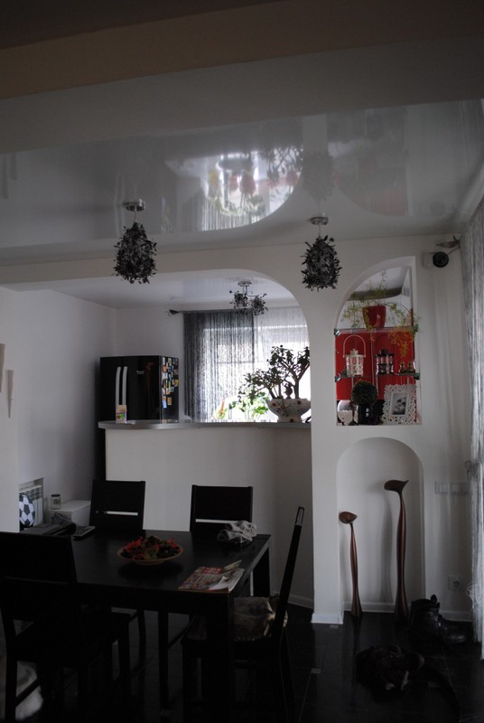Из-за особенностей технологии монтажа натяжного потолка между самим полотном, а точнее багетом, к которому он крепится, и стеной остается небольшой технологический зазор. Один из вариантов маскировки этого зазора – потолочный плинтус.