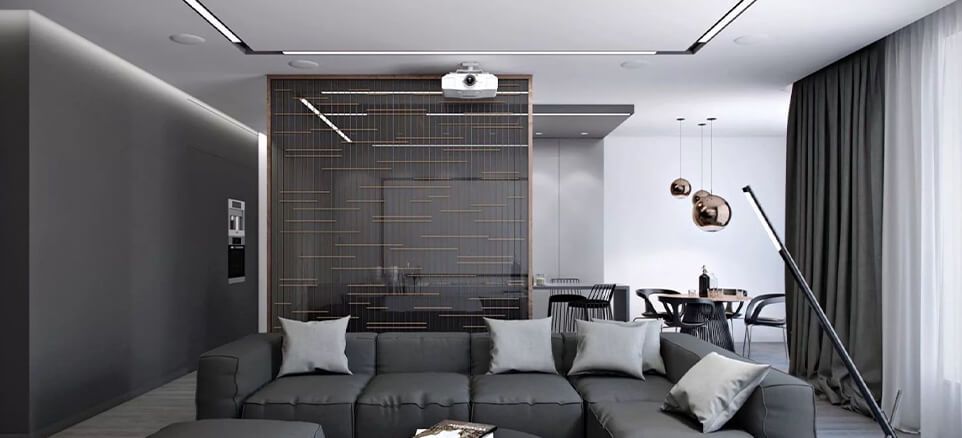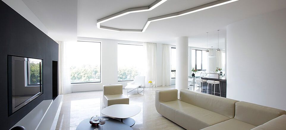 Кроме того, можно оригинально обыграть стык потолка со стеной бесщелевым креплением, теневым примыканием или парящий конструкцией.