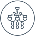 На потолках в стиле арт-деко в большинстве случаев создается система освещения из нескольких люстр, или одной люстры и большого числа светильников.