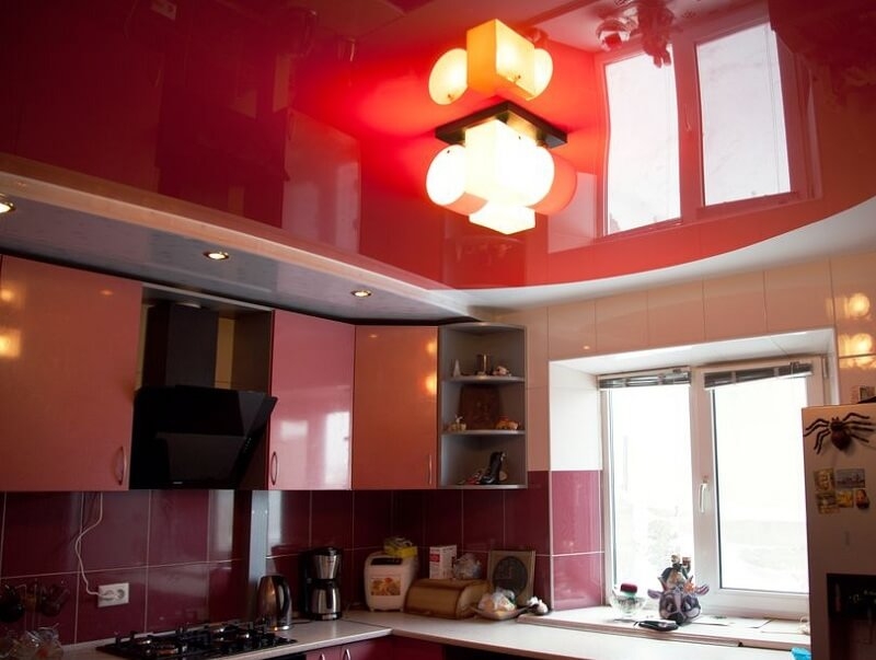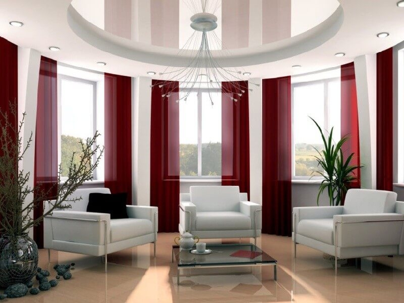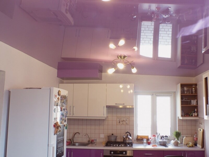 В соотношении с другими видами отделки потолков, натяжные будут смотреться наиболее ярко и контрастно. Равномерность, чистота и яркость цвета может быть достигнута только натяжным потолком. Ну, а современность такого вида отделки потолков не вызывает сомнения.