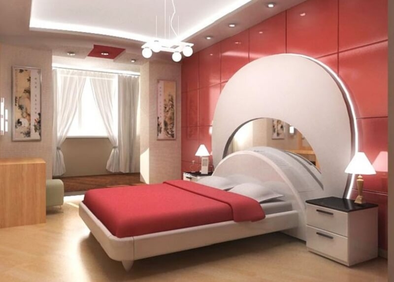 Никаких цветочков и мелких узоров. В одной комнате используется сразу несколько ярких контрастных цветов. В таких интерьерах часто используют ультрасовременные материалы и элементы декора.