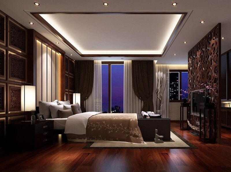 Натяжные потолки в таком стиле, если и приемлемы, то только в матовой, сатиновой фактуре. Их можно устанавливать между балок в виде разных сегментов, так как обычно потолки в стиле Готика имеют вид свода.