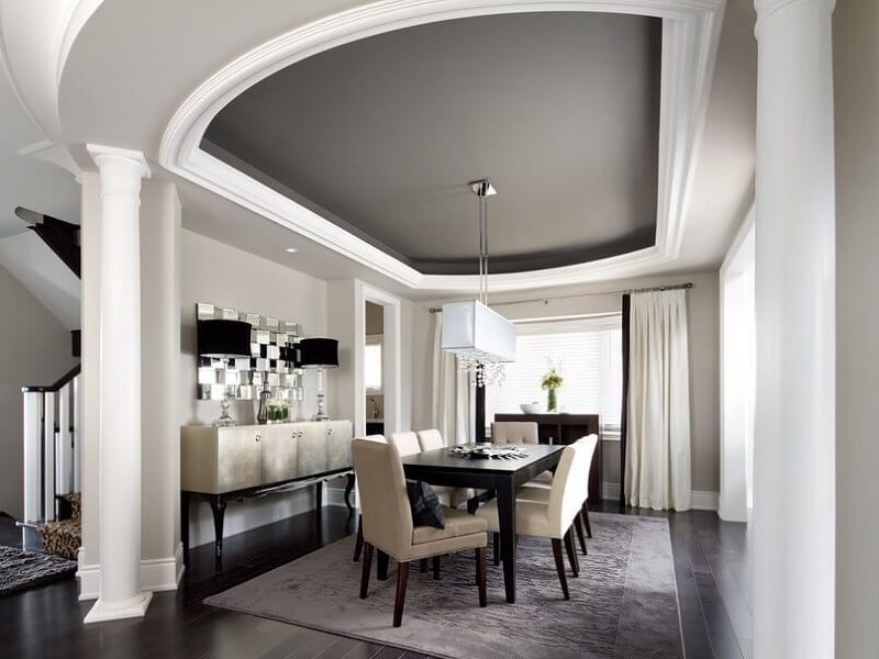Зачастую натяжное полотно устанавливается сегментарно между балок и имеет вид свода, типичного для готического стиля.