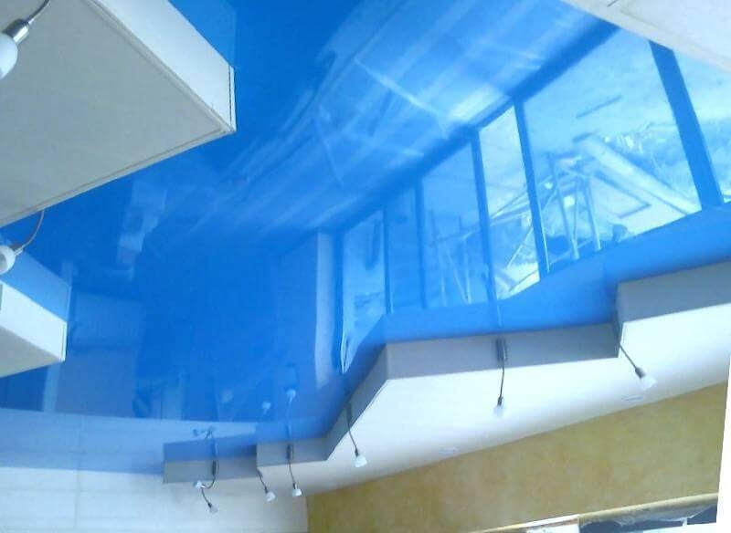 Натяжные потолки практически всегда используются в этом стиле. И в данном направлении они могут быть и глянцевые и матовые.